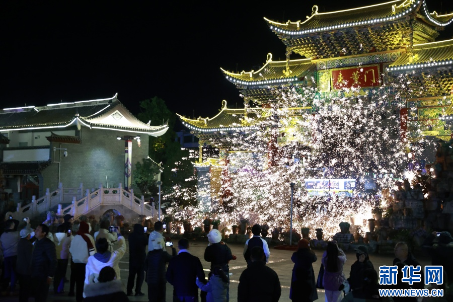 嶍峨古镇上的焰火表演(2025年11月28日摄)。新华网发(杨桢宇 摄)
