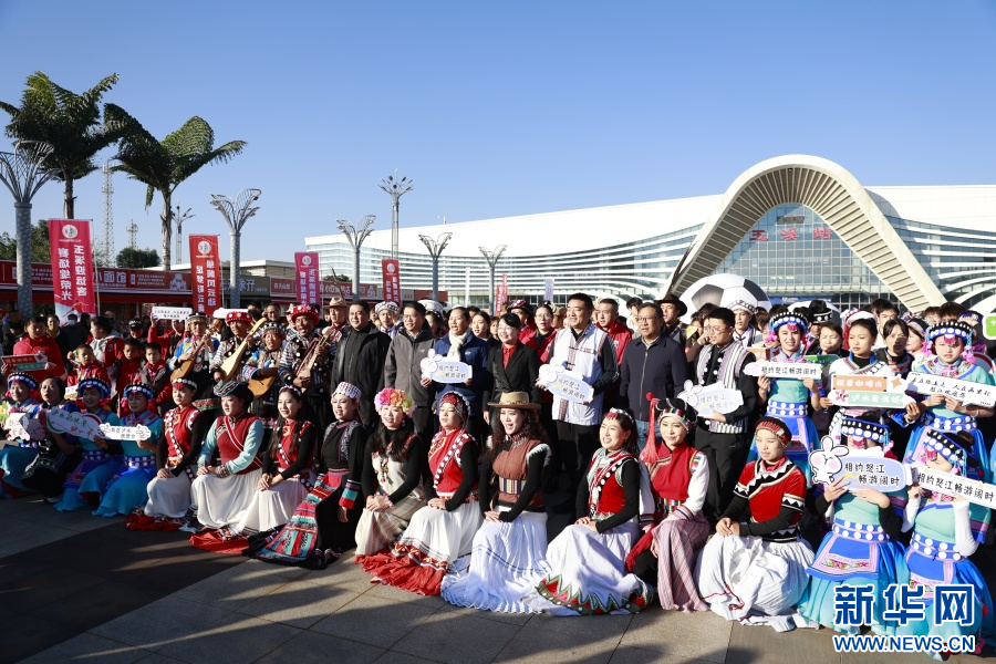怒江球迷团在玉溪高铁站合影(2025年11月29日摄)。新华网发(杨桢宇 摄)