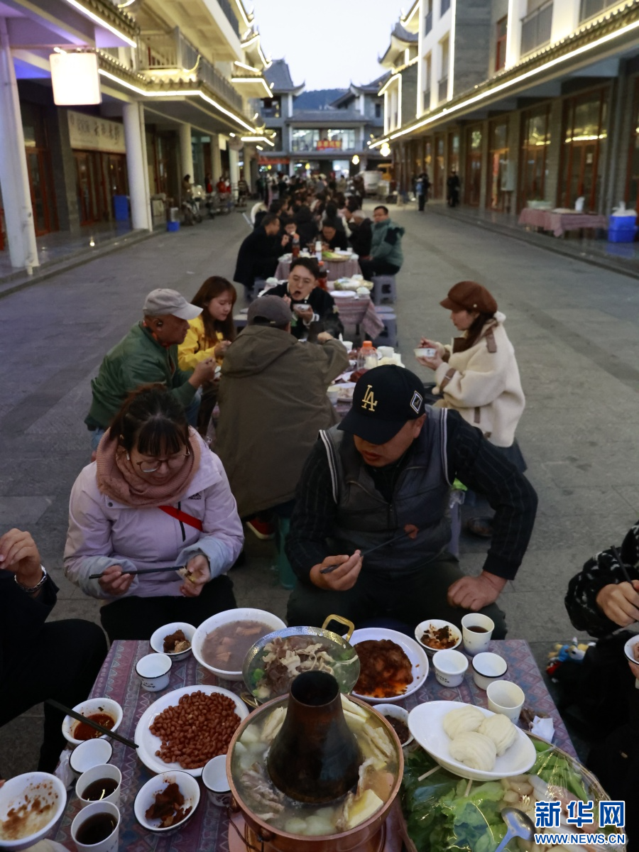 除此之外,当日还有多样非遗主题活动在嶍峨古镇上演。在萃秀书院,非遗代表性传承人现场开讲彝族花鼓舞、“彝族四腔”和“彝族四弦”的传承故事,并通过现场教学让参与者亲身感受峨山彝族自治县“彝族花鼓舞之乡”的独特魅力。在古镇街区,长街宴上的彝族特色美食香气四溢,游客与当地人同吃彝族饭、共唱彝族歌。