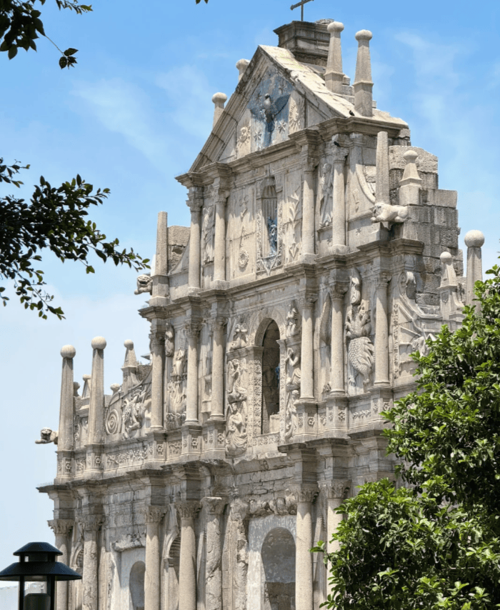 今日重头戏是驶上港珠澳大桥!碧海蓝天间感受世纪工程的壮阔。进入澳门后,直奔世界文化遗产大三巴牌坊。随后登上炮台山俯瞰老城全景,再访金莲花广场与妈祖庙,感受多元信仰的包容性。阿兵一路讲解历史典故,让景点不再只是拍照背景,而是有故事可听、有文化可品。晚上入住氹仔附近,步行即达官也街,榴莲雪糕、猪扒包、杏仁饼吃到扶墙走。